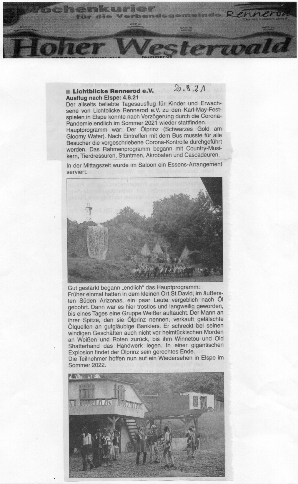 Tagesausflug zu den Karl May Festspielen in Elspe am 7.07.2018
